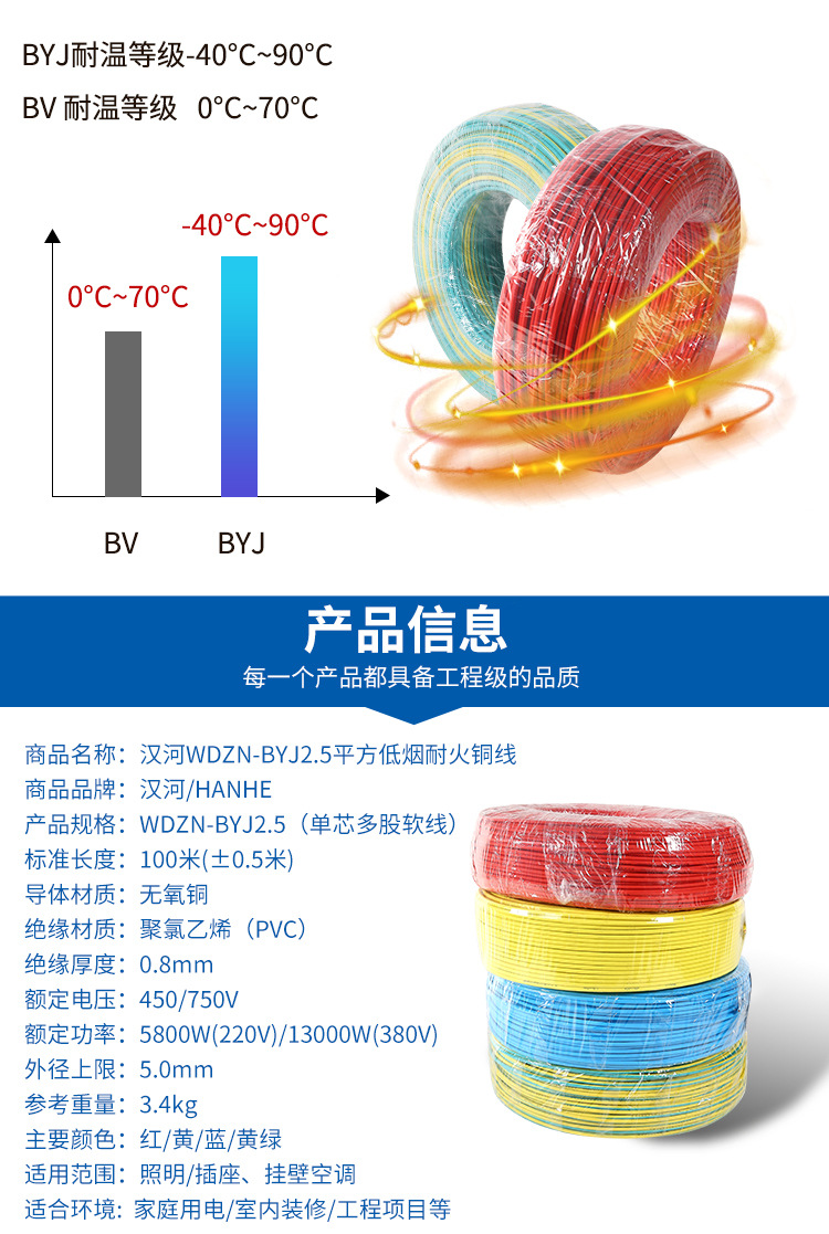 WDZN-BYJ2.5平方輻照無鹵低煙A級耐火家裝電線插座線 2020-08-08 本文被閱讀 次