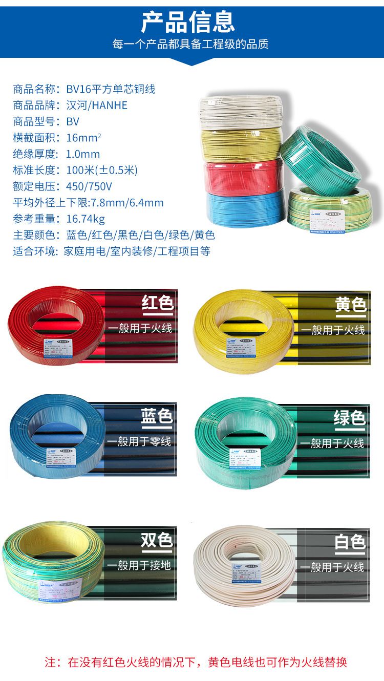漢河電纜 BV16 平方國標銅芯家裝 單芯銅線 硬線 進戶總線 2020-08-10 本文被閱讀 次
