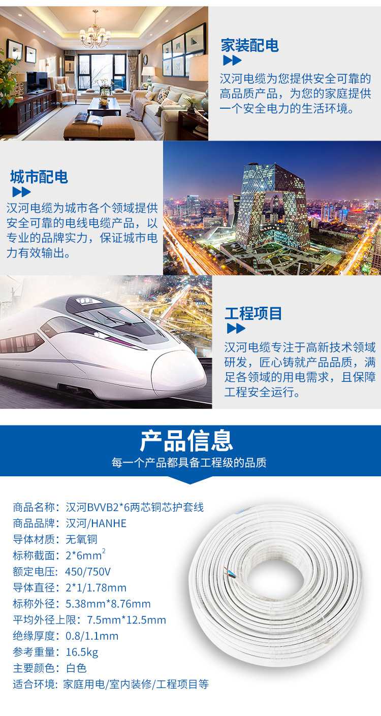 漢河電線 BVVB 26mm2國標2芯硬護套線銅芯家裝電線家用明線 2020-08-10 本文被閱讀 次