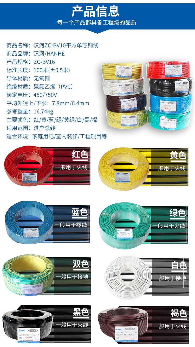 漢河電線電纜 ZC-BV16mm2單芯銅線家用入戶電線 2020-08-10 本文被閱讀 次