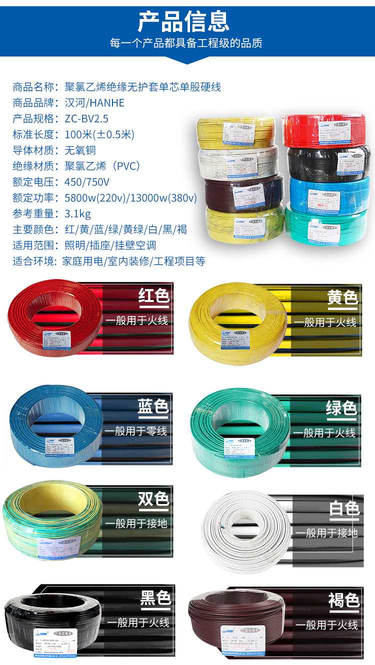 漢河電線電纜ZC-BV2.5平方 銅芯國(guó)標(biāo)家裝電線 單芯單股硬線足米 2020-08-10 本文被閱讀 次